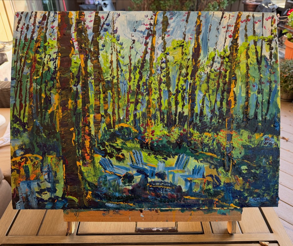 Michigan was showing off — crisp air, golden light, the kind of fall weekend that insists you step outside. I pulled out my paints, set up my easel in the yard, went for a long walk, had lunch with my son at a new restaurant, and put on some music while the sunlight poured in. It felt good to let the creative pressure go quiet for a while.